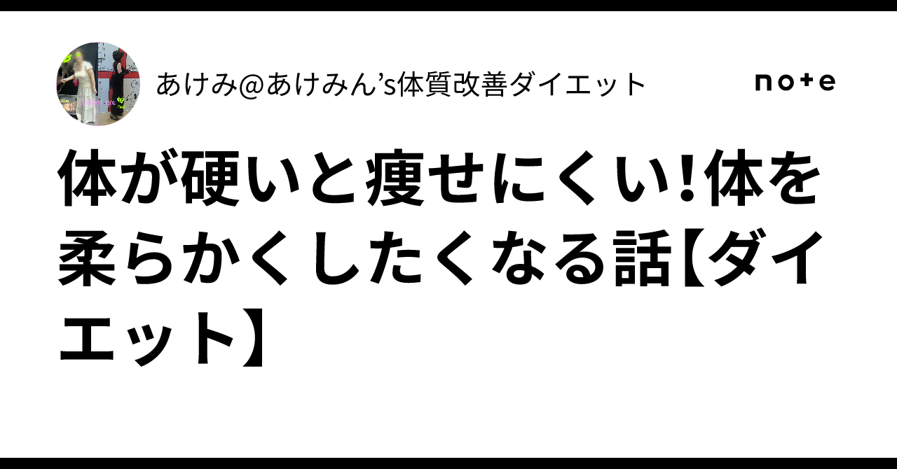 体が硬いと痩せにくい!体を柔らかくしたくなる話【ダイエット】|あけみ@あけみん’s体質改善ダイエット @akemi_you https://t.co/q0qxENsTv6— あけみ@アラフィフ・アラカンまでキレイでいられる!本当のダイエット方法 (@akemi_you) June 17, 2025